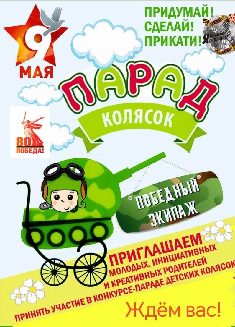 "Победный экипаж" Редакция газеты "Победное знамя" Табунского района совместно с отделом по культуре, спорту и делам молодежи в рамках юбилейных мероприятий Победы объявила для активных и креативных родителей конкурс - парад детских колясок “Победный экипаж”.Участникам конкурса предложено оформить свою коляску в военной тематике, используя любые технологии, дополнительные приспособления и аксессуары, не мешающие движению коляски и не создающие неудобства ребенку и окружающим. Конкурс пройдет 9 мая на Центральной площади райцентра. Победителей ждут подарки.Для участия необходимо подать заявку до 5 мая по адресу:Табунский РДК, ул. Ленина, 17 (Габ Юлия Петровна, т. 89293767140 ) или здание редакции газеты "Победное знамя", ул. Ленина, 12 (Алубин Игорь Владимирович, т. 89130944882).... Ссылка на публикацию #80-лтие #Победы