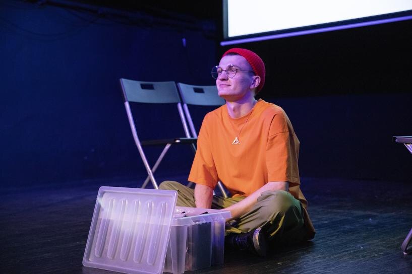 Стендап. С чем ассоциируется этот жанр у зрителя? Наверное, с незатейливыми лёгкими шутками на тему отношений или других бытовых тем. Так начинается моноспектакль «Мальчик, который выжил» (16+) самарского театра-студии «Вместе», который поставили на сцене Лицейского драматического театра в рамках фестиваля «ЧАТ». В основе — пьеса Фёдора Жельне «Жизнь после смерти» (16+). Мальчик в яркой футболке, красной шапке и в очках, как у Гарри Поттера, развлекает публику типичными стендаповскими шутками, спрашивает у зрителей, кто читал книгу про волшебника, а кто смотрел про него фильм. Он — яркий студент журфака Анатолий Петров, чью роль в постановке исполнил Иван Извеков. На фоне играет расслабляющая музыка, а проектор показывает кадры киноленты про «мальчика, который выжил». Публика забавляется. В какой-то момент задумываешься, неужели это действительно просто стендап, и выступающий совершенно случайно оказался на сцене театра? Как бы не так. Спустя несколько минут лёгких шуток выступающий со