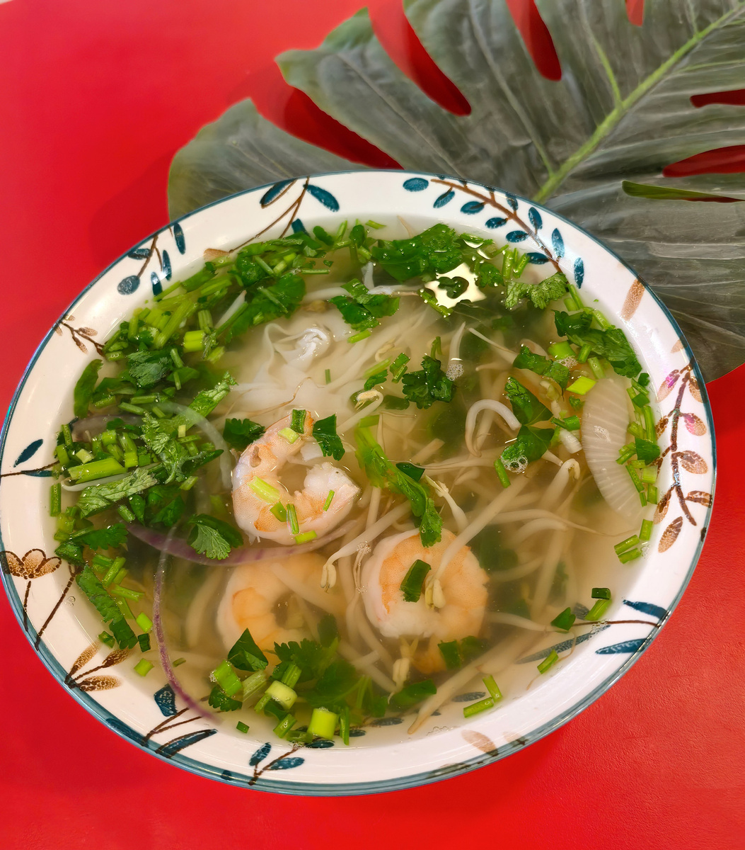 Суп Фо — это традиционное вьетнамское блюдо, которое завоевало сердца гурманов по всему миру. Его ароматный бульон и тонкие рисовые лапши создают неповторимый вкус. Давайте приготовим одну из вариаций этого восхитительного супа дома! Представляем Фо Том! Ингредиенты: Для бульона: • 1,5 кг говядины на кости (например, грудинка или ребра) • 1 луковица • 1 корень имбиря (около 5 см) • 5 звездочек бадьяна • 4-5 гвоздик • 1 палочка корицы • 2-3 столовые ложки рыбного соуса • Креветки • Соль по вкусу • Вода (около 3-4 литров) Для подачи: • Рисовая лапша • Свежая зелень (базилик, мята, кинза) • Проростки бобовых • Лайм (нарезанный дольками) • Чили (по вкусу) • Репчатый лук Приготовление: 1. Приготовление бульона: • В большой кастрюле доведите воду до кипения. Добавьте говядину и варите 5 минут. Затем слейте воду и промойте мясо под холодной водой. • Верните мясо в кастрюлю, добавьте очищенный и разрезанный пополам лук, имбирь (обжарьте его на сухой сковороде до появления аромата) и специи (ба
