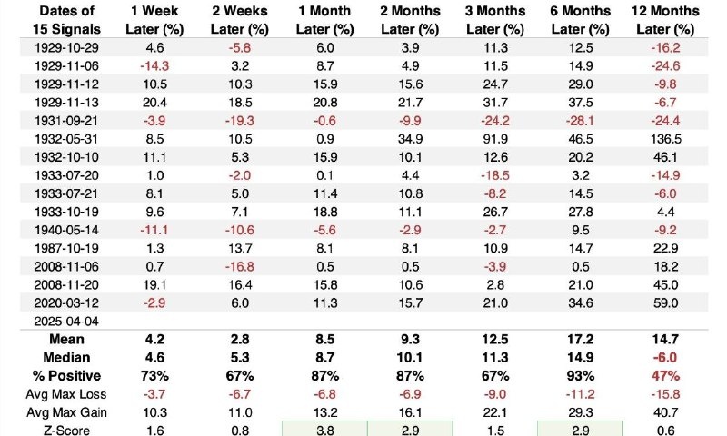 До прошлой недели в истории рынка акций США было всего 15 случаев, когда индекс два дня подряд падал на 4,5% или больше. Причем,… До прошлой недели в истории рынка акций США было всего 15 случаев, когда индекс два дня подряд падал на 4,5% или больше. Причем, 10 из них пришлись на период Великой Депрессии в 1930-х годах. После этого индекс торговался еще ниже через 1 и 2 месяца всего дважды, а через 6 месяцев- всего один раз. А в периоды, не относящиеся к Великой Депрессии, такое 2-дневное снижение рынка всегда происходило у циклических минимумов, после чего рынок возобновлял рост. На прошлой неделе произошел 16-й случай (в четверг и пятницу индекс падал на 4,5% или больше). Даже если начавшиеся торговые войны приведут к мировому кризису, сравнимому по масштабам с 30-ми годами прошлого века, статистика говорит в пользу как минимум торгуемого «отскока», который может начаться с текущих уровней или где-то рядом с ними. Как обычно, это не гарантия и не рекомендация, а всего лишь любоп