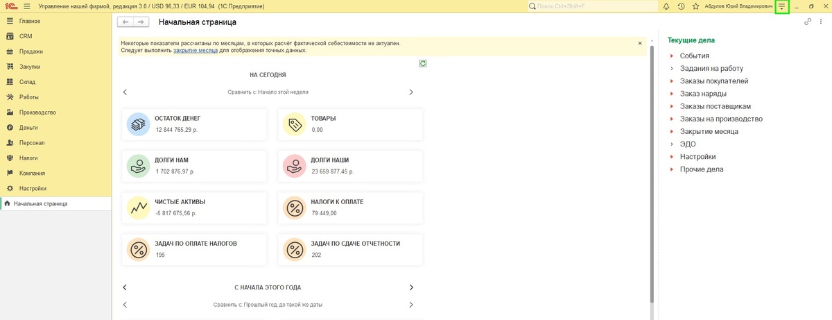 Настройка внешнего вида УНФ📚 1️⃣Для настройки интерфейса необходимо перейти в подменю (правый верхний угол) 2️⃣Открываем подменю и находим Настройки. 3️⃣Настройка панелей – отображает доступные панели программы, в стандартном виде добавлена только панель разделов и панель открытых 4️⃣Настройка начальной страницы – отображает первую страницу, которую мы видим при открытие базы 5️⃣Настройка панели разделов – отображает разделы программы 6️⃣Для того, чтобы вернуть к первоначальному виду, нужно нажать Еще – Установить стандартные настройки 📣Подробнее о настройке в нашей инструкции: https://scloud.ru/ask_question/nachalo-raboty-v-1s-unf/nastroyka-vneshnego-vida-unf/