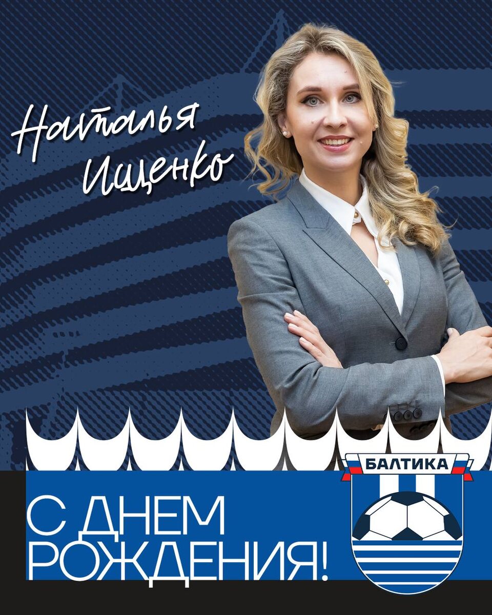 БАЛТИКА ПОЗДРАВЛЯЕТ 🥳 Сегодня день рождения отмечает заместитель Председателя Правительства и министр спорта Калининградской области — Наталья Ищенко! Желаем Вам крепкого здоровья, неиссякаемой энергии для реализации самых амбициозных планов! А также благодарим Вас за вашу поддержку и вклад в развитие спорта в регионе! С днем рождения, Наталья Сергеевна!