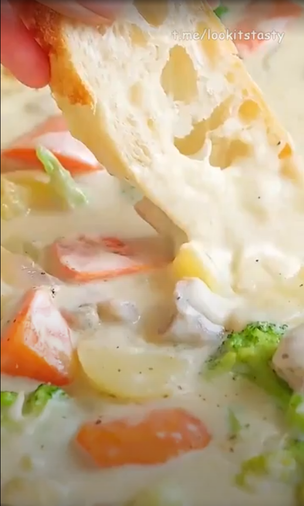 Сливочный суп-рагу🥛🍗 Вкусное куриное рагу с овощами в сливках, которое точно понравится всем! Ингредиенты: • Куриные бедра — 300 г • Морковь — 2 шт. • Картофель — 2 шт. • Шампиньоны — 200 г • Брокколи — 200 г • Лук — 1/2 - 1шт. • Масло — 25 г • Сливки — 200 г • Масло — 25 г • Мука — 25 г • Молоко — 300 г Способ приготовления: 1. Подготовка ингредиентов: • Куриные бедра нарежьте на небольшие кусочки. • Морковь и картофель очистите и нарежьте кубиками. • Шампиньоны нарежьте ломтиками. • Брокколи разделите на соцветия. • Лук мелко нарежьте. 2. Обжарка курицы: • В глубокой сковороде или кастрюле разогрейте немного масла на среднем огне. • Добавьте куриные бедра предварительно посыпав их солью с перчиком и обжаривайте до золотистой корочки, примерно 5-7 минут. 3. Добавление овощей: • К курице добавьте лук, дайте ему 1-2 минуты и добавьте морковь, картофель и шампиньоны. Обжаривайте все вместе еще около 5 минут. 4. Приготовление соуса: • В отдельной кастрюле растопите масло на среднем о