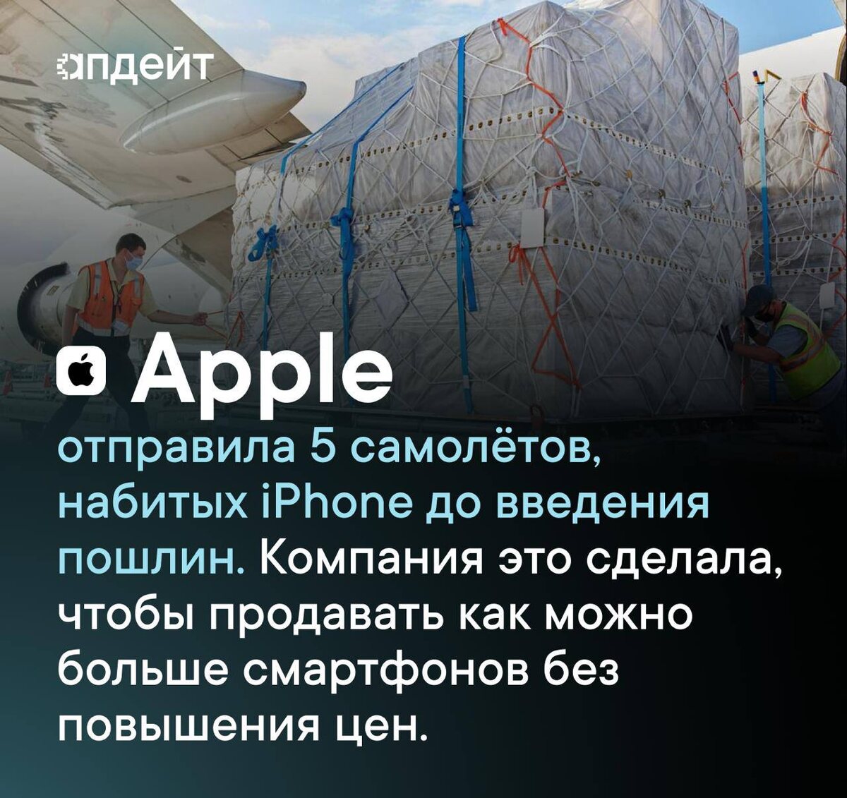 🛒Контрольная закупочка Apple послала 5 самолетов в срочном порядке из Индии в США для наращивания запасов iPhone. Компания сделала это на последней неделе марта за 3 дня, сообщает The Times of India. Делается это всё из-за новых пошлин Трампа, в силу которых которых себестоимость iPhone вырастает примерно на 54%. Компания не боится повышений цен, однако пытается сделать всё, чтобы повышать их как можно меньше. Уже ведутся договоры на снижение стоимости комплектующих с китайскими производителями. ⚡️ Подписаться.