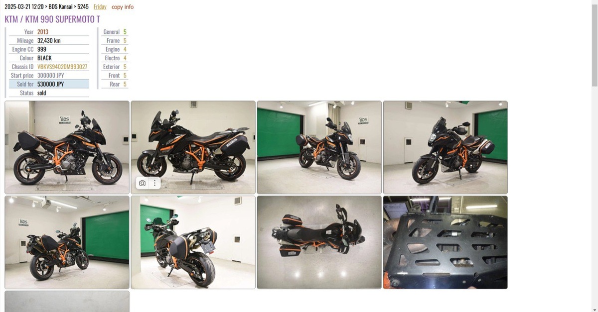 🔼Всем привет! Помимо автомобилей так же доступны к заказу мото🚀 из Японии🇯🇵 KTM SUPERMOTO Т. 📌Объем - 990 📌Пробег -32000 км 📌Оценка - 5 💷Цена данного экземпляра со всеми расходами, комиссиями и прочим, по текущим курсам валют 💷 👍🟢 600 426 руб 🟢 Под ключ до Владивостока👍 ‼️Заказать авто/мото +7-931-371-40-45