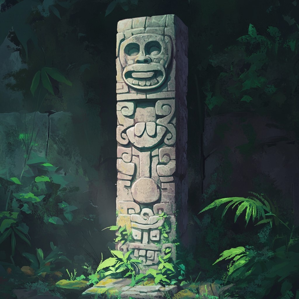 Создано на основе запроса: stone column, game art style, illustartive style, mood of ald mayan city