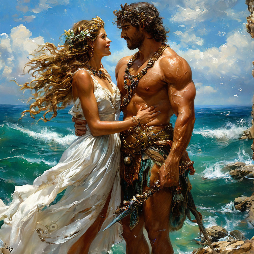 Афродита, богиня любви и красоты, выбрала иной путь — путь сердца. Она не спешила, её движения были мягкими, а улыбка — обволакивающей, словно тёплый ветер. Вместо громких обещаний она заговорила о страсти, предложив Парису любовь самой прекрасной женщины мира — Елены, дочери Зевса и Леды, жены спартанского царя Менелая. Елена была не просто красавицей: её облик вдохновлял поэтов, а её имя уже стало символом совершенства. Афродита знала, что для молодого Париса, полного юношеского пыла, любовь и желание могут затмить любые посулы власти или славы. Она не предлагала ему царств или побед — она дала мечту, личную и чувственную, которая обещала счастье, недоступное другим.