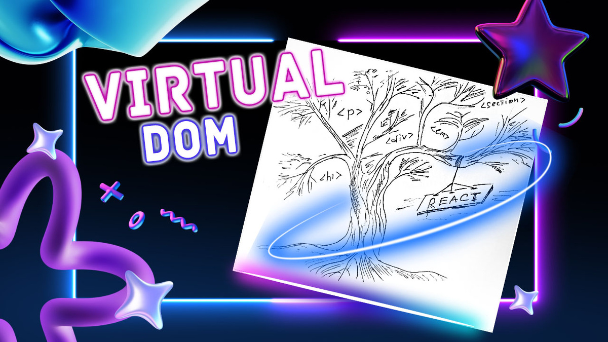 Народ, всем привет. React — одна из самых популярных JavaScript-библиотек для создания пользовательских интерфейсов. Одной из ключевых фишек React считается Virtual DOM (виртуальный DOM). Он делает React быстрым, эффективным и отзывчивым. Но как именно работает Virtual DOM? Почему он лучше "настоящего" DOM? А давайте-ка разберемся! Начнем с азов. DOM (Document Object Model) — это представление HTML-документа в виде дерева объектов. Пример HTML: <div> <h1>Hello, world!</h1> <p>Welcome to my site</p> </div> В DOM это будет выглядеть примерно так: div ├── h1 └── p Каждый элемент становится "узлом" дерева. Когда браузер рендерит страницу, он строит это дерево. Но у такого подхода есть несколько важных проблем, благодаря которым работать с ним JavaScript’у становится тяжело: Virtual DOM (виртуальный DOM) — это легковесная копия настоящего DOM, хранящаяся в памяти. React использует эту копию, чтобы эффективно обновлять интерфейс. Когда ты изменяешь состояние компонента, React создает новый V