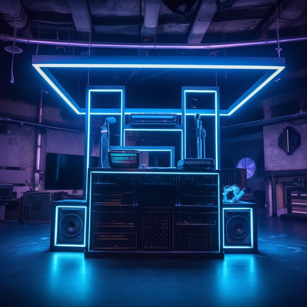 Создано на основе запроса: create a realist picture of a black dj booth in the middle of a gym fulll of equipment, classy and dark, and some neons --- Автоперевод: Создайте реалистичную картину черной диджейской кабины в середине спортзала полного оборудования, стильного и темного, и некоторых неоновых Необычно выглядит? 🤔 https://dzen.ru/id/65c0c65c86e4f837c27b24d7 #ИИ #AI #нейросеть #midjourney #art