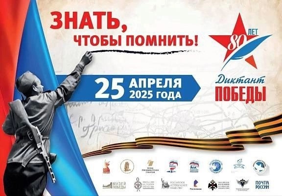 Международная патриотическая акция «Диктант Победы» пройдет 25 апреля! Он традиционно состоится на региональных площадках по всей России, онлайн на официальном сайте акции диктантпобеды.рф. Для подготовки к акции на сайте диктантпобеды.рф размещены тренировочные и пробные Принимайте активное участие в этой акции!