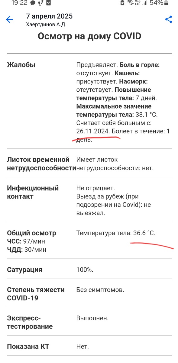 Апрель 2025, Москва. Миша 14 лет, аутизм, УУО На сегодняшний день кашель по звуку такой же, но частота снизилась. Сегодня он уже несколько минут может не кашлять. Вчера приходил врач Хаертднинов А.Е. То, что он написал в электронной карте даже не удивило меня. На момент осмотра я предьявила жалобы: болеет 15й день, температура последние 5 дней 37, сегодня весь день 37,6. Кашель навязчивый грубый, лающий, интервал 20 секунд. Сопли зеленые. Принимает АБ 3й по счету за 15 дней. Отмечается улучшение от Бронхолитина (ну еще бы, старый добрый эфедрин в составе) и пульмикорта. Доктор посмеялся с бронхолитина ( мне не смешно: синекод и либексин пьем как воду 5 дней без эффекта, а тут в первые же сутки улучшение). Может он его перепутал с каким - нибудь другим названием на Б? Температуру мерять не стал. В горло смотреть не стал. Правда, мазок на ковид взял. Прослушал фонендоскопом 20 секунд от силы: бронхита нет, полощите горло, и довольный собой ушел. Перед уходом по моей просьбе выписал реце