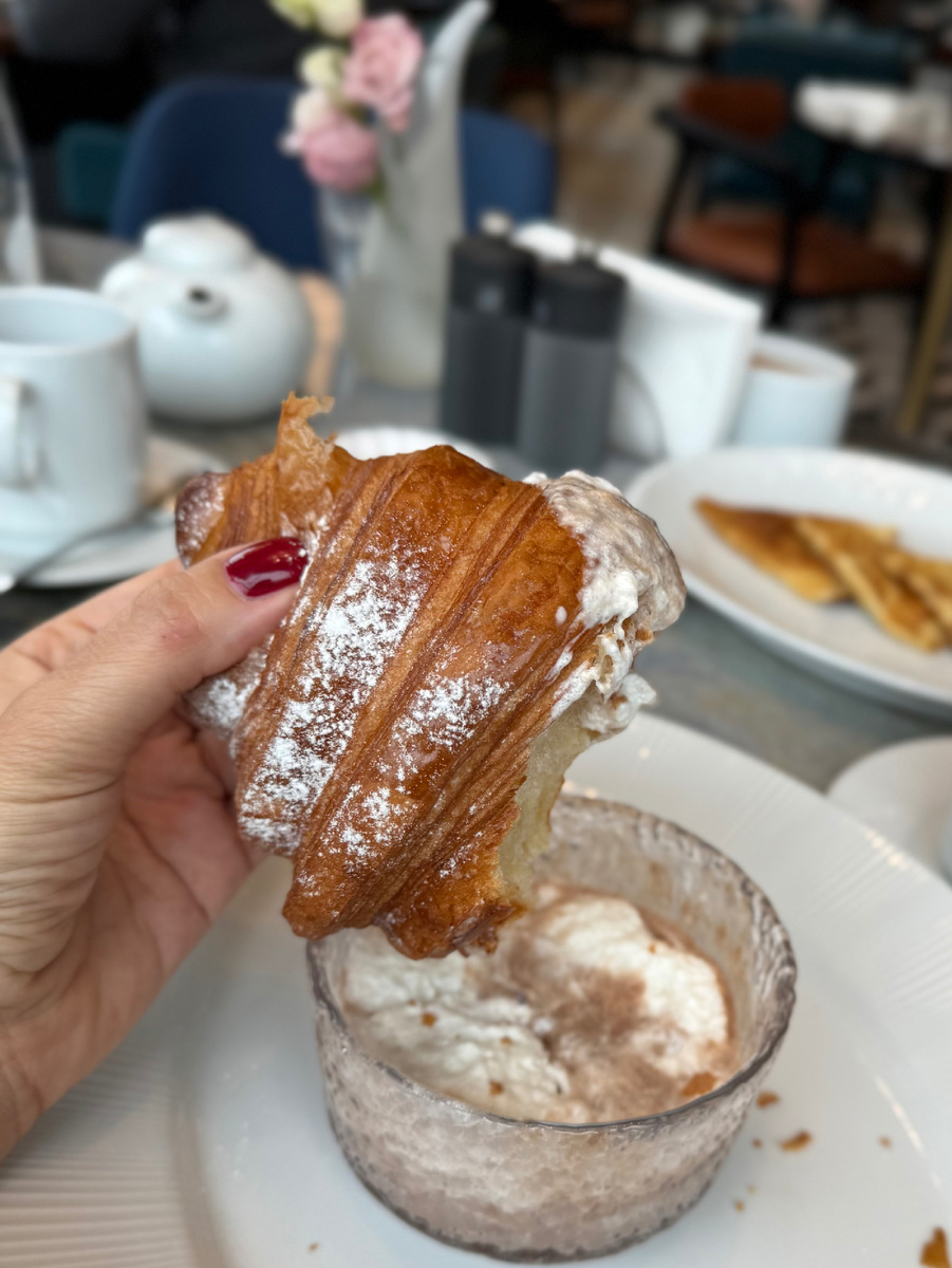 🥐 Макать круассан во взбитые сливки, политые теплым шоколадом - вот так надо начинать день! Это мне шеф Lea, Алексей Волков, сказал. Кто я такая, чтобы спорить с шефом? 🔝 Кстати, шеф рассказал, что видел эту фишку в Париже, в кафе, в которое стоят очереди, чтобы попробовать. А тут он слегка доработал рецептуру и попробовать нежнейшее угощение можно вообще без очереди, да еще и в сердце самого лучшего города Земли! Пока на улице прям фу, надо поднимать эндорфины, серотонины, дофамины и окситоцины проверенными способами! Завтраки в Lea до 12:00, и есть лайфхак: прийти к 11:30 и успеть зацепить и меню завтраков и основное меню. Такую схему мы проворачиваем с младшим сыном, потому что он фанат стриплоина bbq, который в Lea с особенной эффектной подачей: обжигают мясо деревянным поленом прямо у столика. А еще круто, что Lea работает круглосуточно! Сейчас потеплеет и это прям будет супер преимущество!