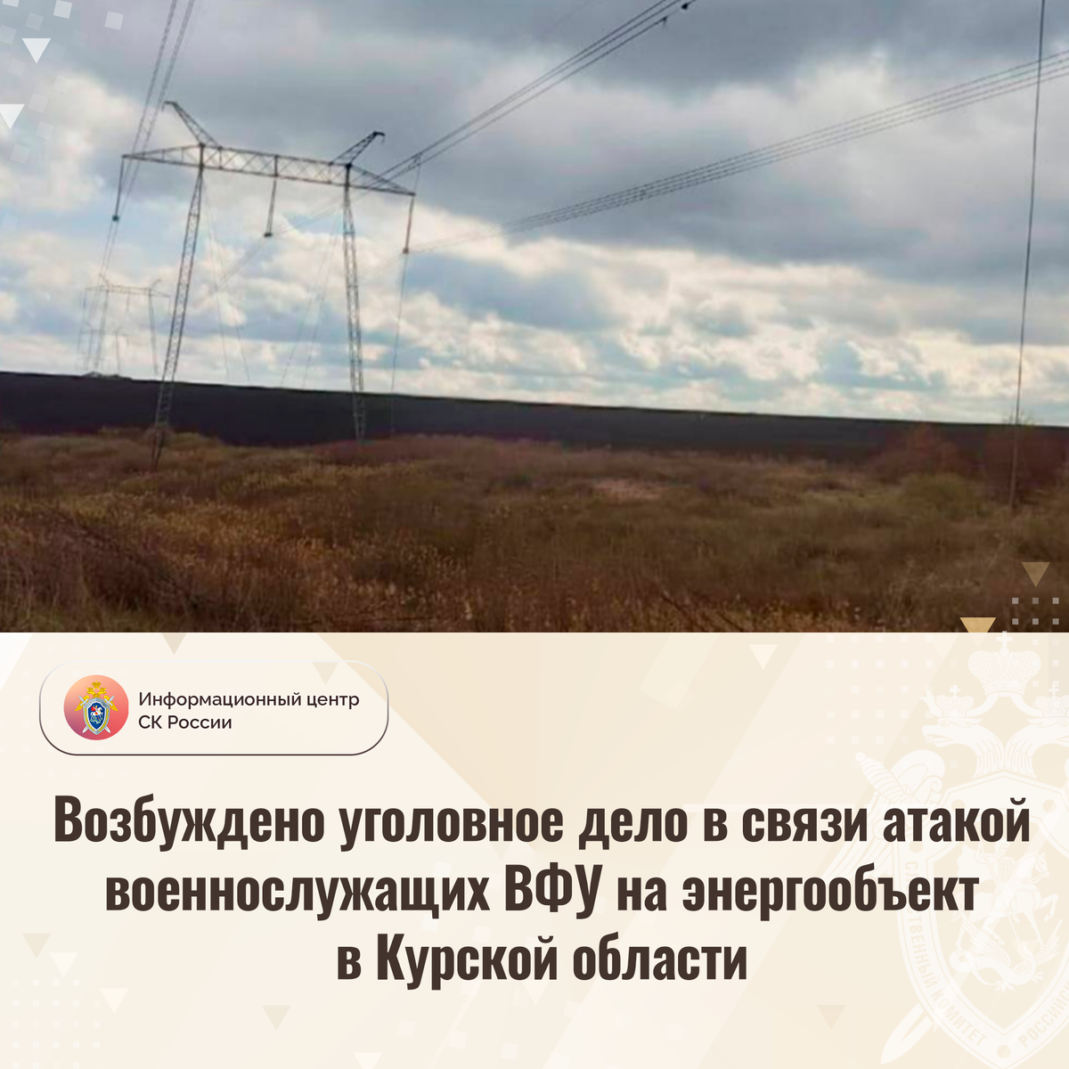 Возбуждено уголовное дело в связи атакой военнослужащих ВФУ на энергообъект в Курской области
