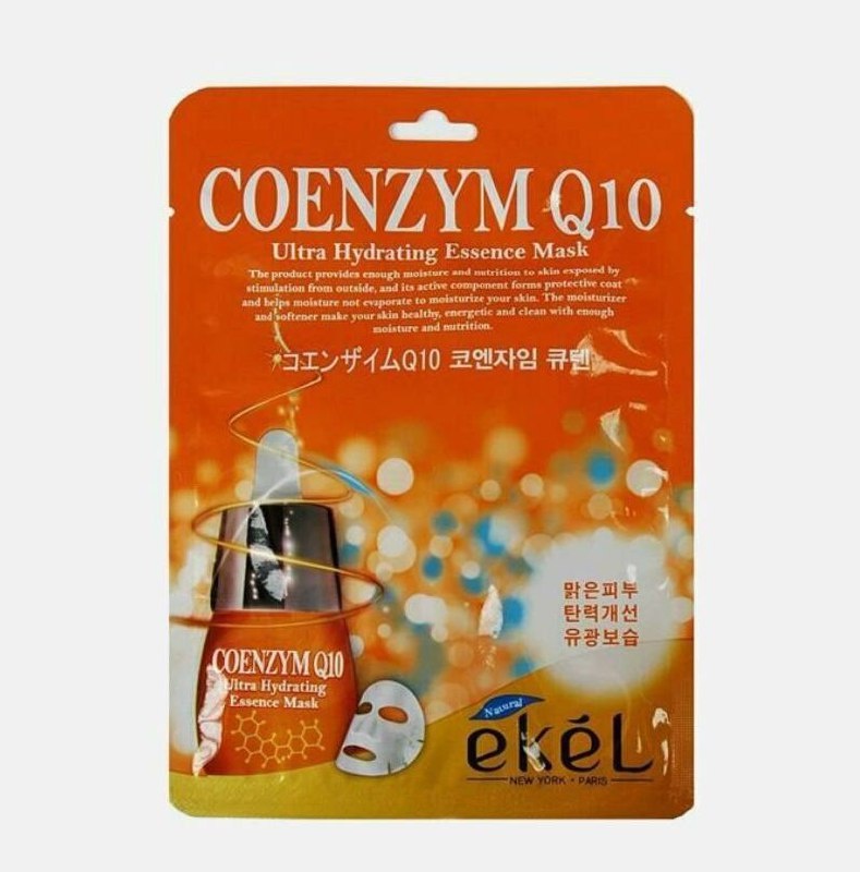 Тканевая маска Ekel Coenzym Q10 увлажняет и подтягивает кожу, делая её более гладкой и сияющей. Подходит для всех типов кожи, особенно рекомендуется женщинам после 30 лет. 💆♀️