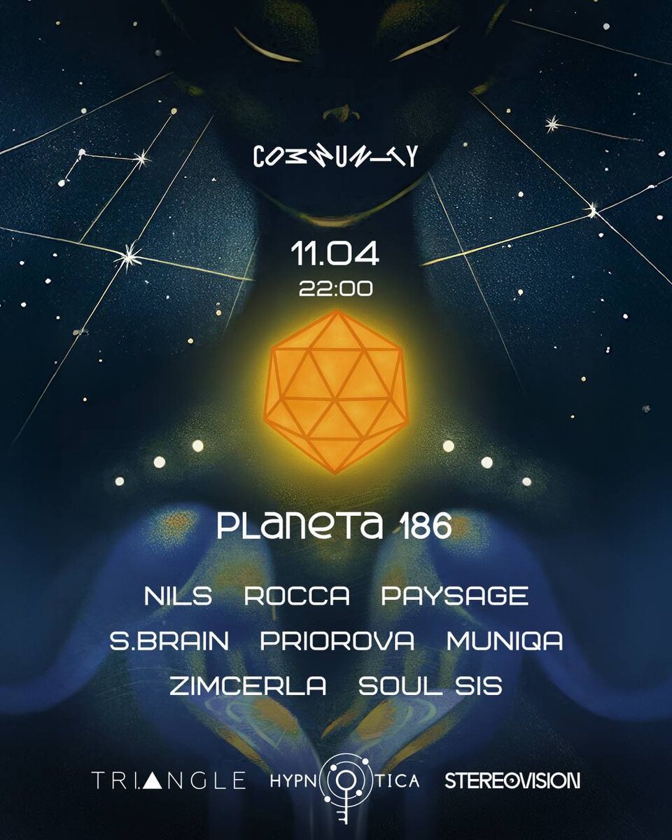 Приветствуем вас, жители планеты Земля. Мы рады сообщить, что в пределах Млечного пути обнаружена «PLANETA 186». Планета густо заселена, нам удалось установить контакт с местным населением и они готовы принять нашу экспедицию для знакомства и культурного обмена. Для путешествия на «PLANETA 186» из разных уголков Вселенной соберется группа музыкальных энтузиастов, чтобы завирусить внеземную оболочку хаус-рейвом! Это музыкальное событие станет поистине уникальным в пределах галактики Млечный Путь и потому мы с огромной радостью и трепетом приглашаем вас погрузиться в атмосферу танцевального ритма, дать волю своим эмоциям и насладиться неповторимой атмосферой «PLANETA 186». FC / DC/ 21+ 🎫 Билеты: planeta186.space Резерв: +7 499 811 08 11 📆 11 апреля 📍 Community Moscow, Космодамианская наб., 2