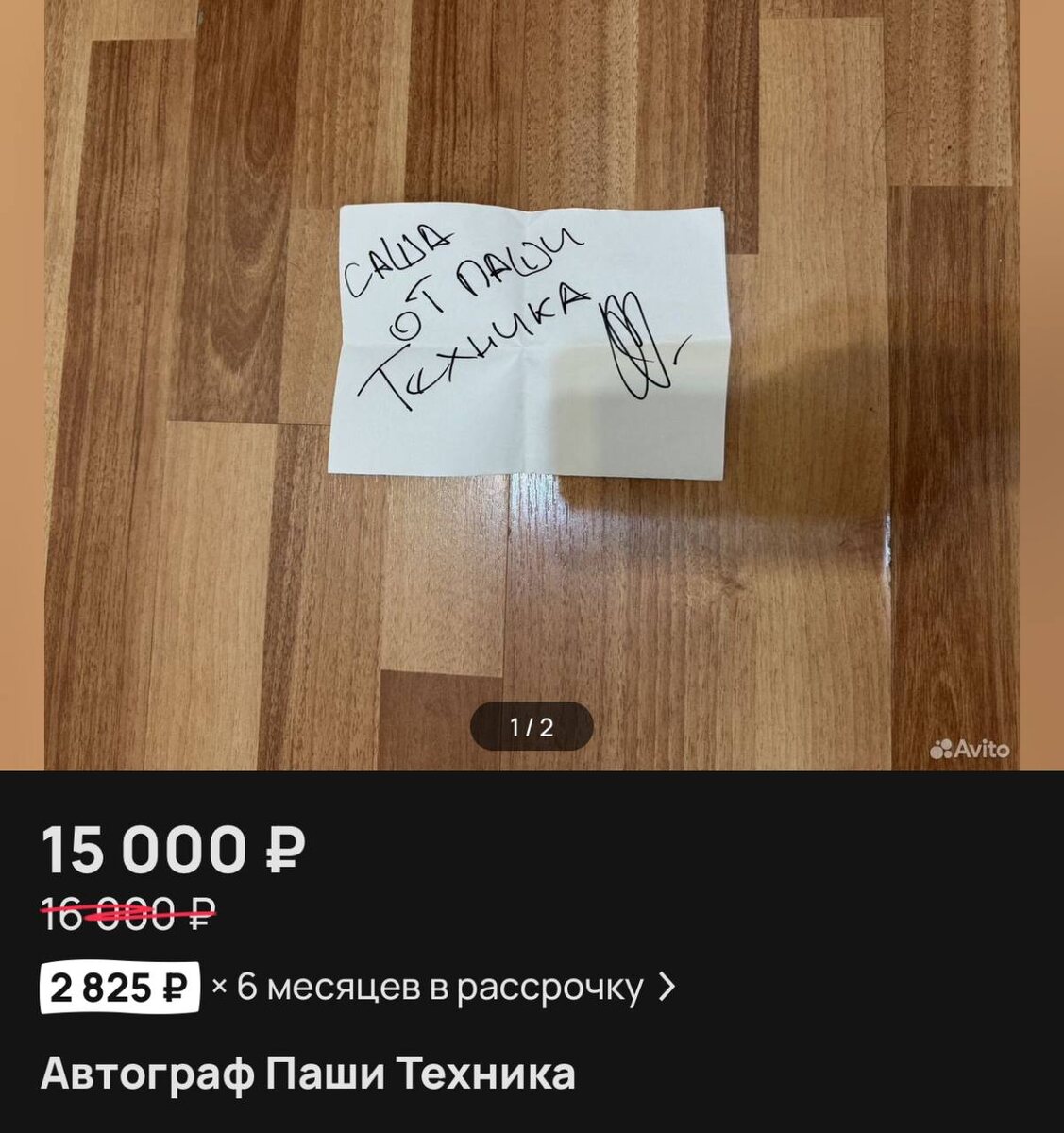 Два автографа Паши Техника продают в Петербурге Рэпер Паша Техник (настоящее имя Павел Ивлев) умер в возрасте 40 лет в Таиланде 5 апреля. Некоторые поклонники грустят в сетях по Технику, а кто-то уже спешит обогатиться на продаже автографов рэпера. Первое объявление выставили на сайт объявлений в Петербурге за 15 тысяч рублей. Новому владельцу за эти деньги достанется автограф, взятый у Паши на летнем концерте в Петербурге в прошлом году. А за 35 тысяч продают автограф с последнего концерта рэпера, который прошёл 16 марта в Северной столице. Подпишись на Комсомольскую правду: СПб — отдай свой буст нам