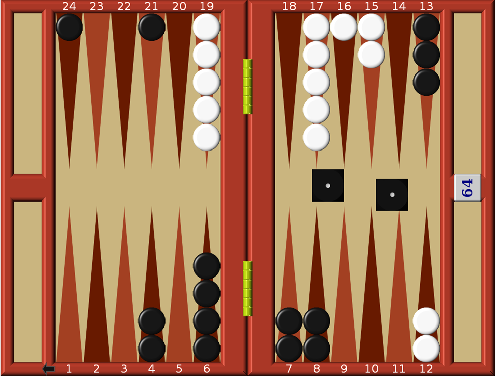 Поэтому следующим шагом является оценка расположения черных, а также наших шансов на побитие их шашки. Расположение черных шашек нельзя назвать удачным – две свечи и один блот, который черным нужно как-то обезопасить уже следующим ходом. Если белые сейчас сделают ход 24/21 6/5, они только облегчат жизнь черным. Постройка продвинутого якоря на 21-м пункте не входит в победный план белых на игру в данной ситуации. Когда Вы позади в гонке – не гоните. Белые в данной ситуации должны пойти на дополнител