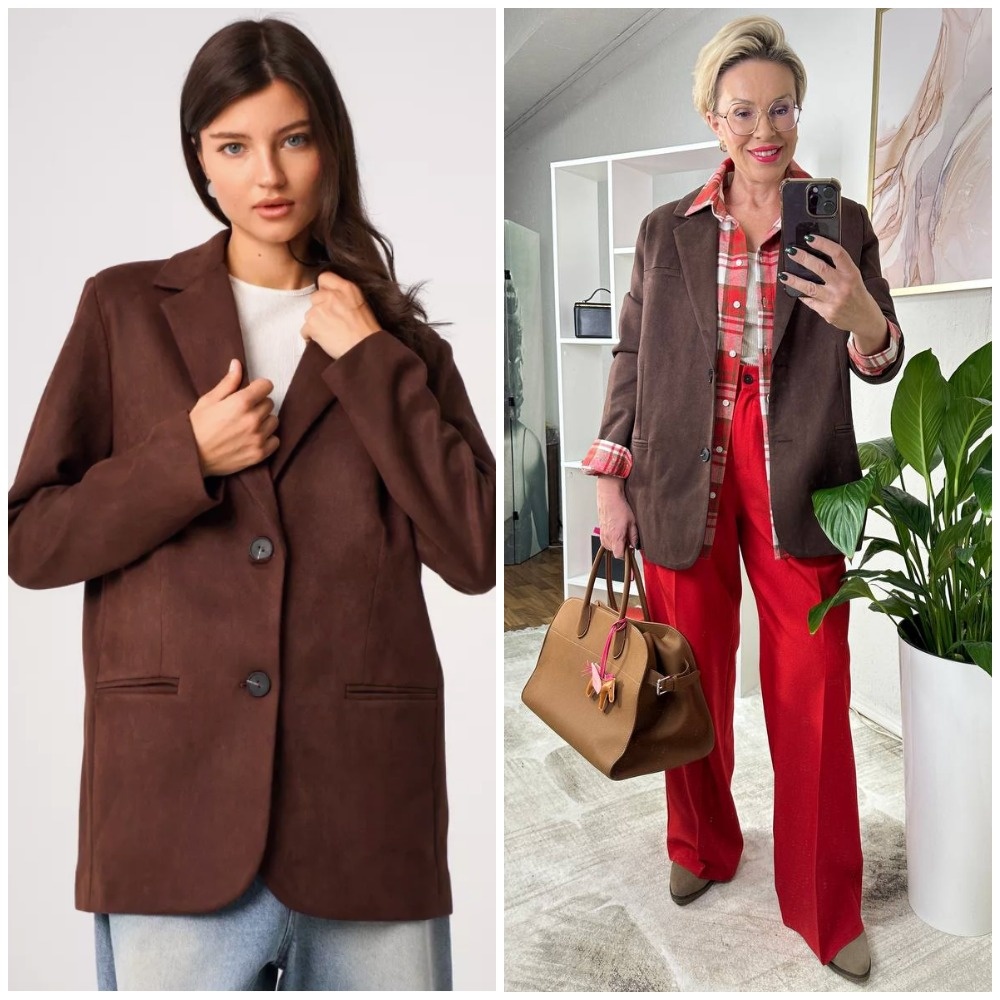 Здравствуйте, дорогие читатели! Меня зовут Ирина, я - стилист, и на этом канале показываю одежду и аксессуары с Wildberries такими, как они есть, то есть, из серии "ожидание/реальность". Мои параметры: рост 169 см, вес 62 кг, 95-75-100 ✅Основной канал: Стильно - не значит дорого! Ставьте лайк в поддержку канала, и давайте смотреть на мою сегодняшнюю покупку. Замшевые жакеты шоколадного цвета (у модели, если что, есть и другие расцветки) - хит этой весны! Поэтому я, конечно же, приобрела себе несколько. С ними легко составлять повседневные образы, причем экспериментировать можно долго. С таким цветом идеально сочетаются, к примеру, голубой, красный. На фото вы видите модель прямого кроя, оверсайз (я обычно ношу 48 размер, и вот как раз 48 сел на меня свободно) и прорезными карманами. Ткань достаточно тонкая, мягкая и тактильно приятная. Жакет хорош на демисезон, в том числе, как самостоятельный верхний слой. Размерная сетка широкая: от 42-го до 60-го размера. Кто там постоянно пишет, ч