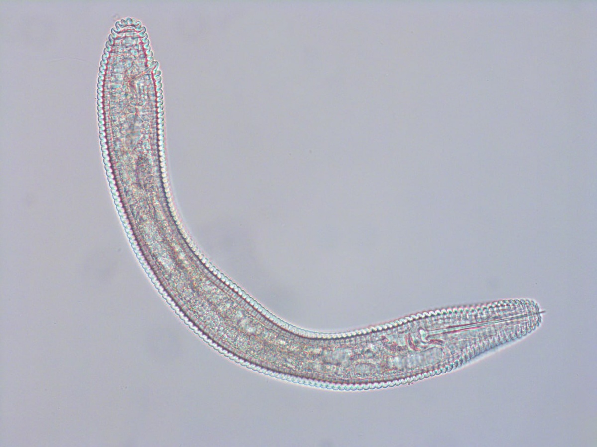 что за прекрасные черви Вот это, представьте себе, нематода. Всем же известно, что нематода - длинная, гладкая и тонкая. А этот червь - толстый, короткий и еще и весь в складочку. Но это все же нематода, из отряда Tylenchida, рода Criconema. Они живут в почве и кормятся, высасывая из растений соки через кончики корешков. Для того, чтобы корешки протыкать, у Criconema есть огромный стилет, натурально в четверть тельца, настоящая шпага, тысяча червей!