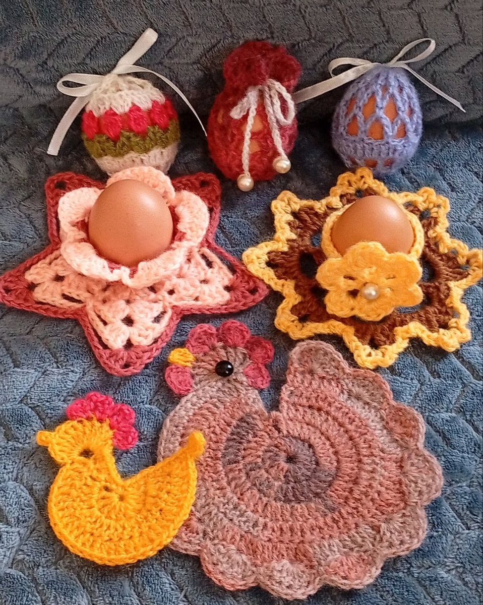 Приветствую всех гостей и подписчиков моего канала! Рада снова видеть вас у себя в гостях! Друзья, мы с вами неплохо потрудились и связали целый пасхальный набор. Есть, чем удивить наших гостей на праздники, есть, чем их одарить. В этой статье я поделюсь схемами, которыми пользовалась при вязании подставок для пасхального яйца. А так же дополнительно для вас еще несколько вариантов вязания подставок со схемами. Есть из чего выбрать. Вы сможете украсить ими свой интерьер и праздничный стол. Также это будет прекрасным символическим подарком – ведь дарить крашенки гораздо интереснее в необычной оболочке-футляре или с креативным дополнением, чем просто так. Сразу скажу, что схемы, по которым вязала подставки, я немного изменила и адаптировала их для более толстых нитей. Так как они рассчитаны на нити типа "Ирис" или "Мак". Но в любом случае, для вязания подставки лучше взять более плотные, твердые нити, чтобы они держали вес яйца. Видео с мастер классом по вязанию этой подставки здесь А