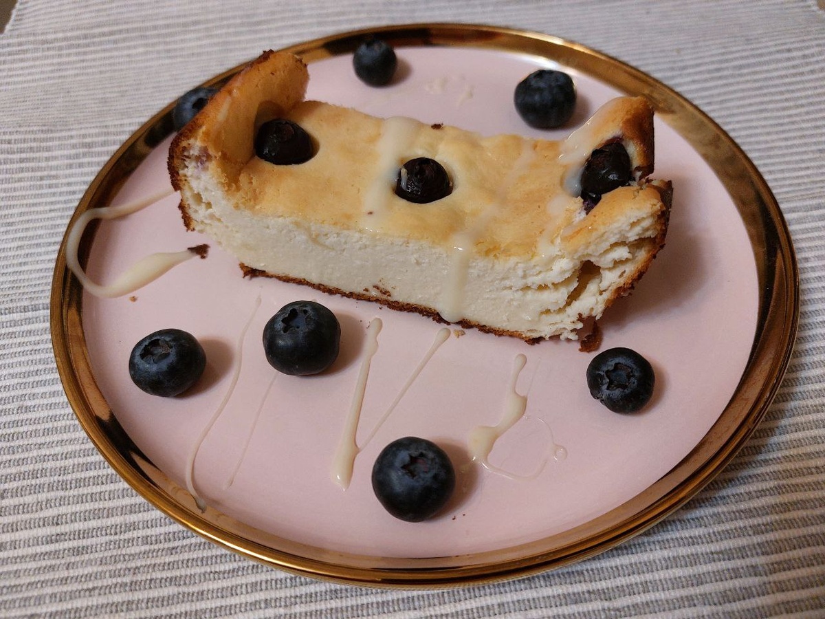 Признаюсь честно - творожные запеканки я не люблю, но появилось настроение приготовить белковый десерт к чаю и выбор пал именно на запеканку творожную. Я люблю готовить что-то новое, пробовать для себя интересное, открывать новые вкусы. Поэтому идея испечь запеканку была как никогда вовремя. И, признаюсь я вам честно, результат превзошёл все мои ожидания. Томить долго не буду, пойдем готовить. Ингредиенты: Творог - 360гр Желтки - 2шт Белки - 2шт Сахар - 50гр Сметана - 100гр Кукурузный крахмал - 2ст.л. Ягоды/фрукты - по вкусу Творог я беру в брикете - он более нежный по своей текстуре. В одну ёмкость кладём творог, сметану, желтки и крахмал - все перебиваем блендером, чтобы масса получилась нежной и однородной структуры. Взбиваем миксером белки с сахаром до устойчивых пиков. Сахар добавляем постепенно и взбиваем на самой маленькой скорости до тех пор, пока наша масса не станет нежным кремом, который при переворачивании крепко держится в чаше. Теперь нужно вмешать белки в творожную