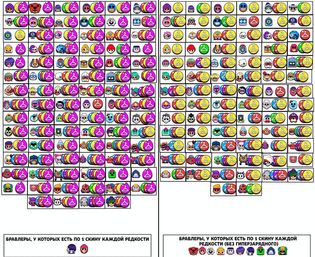 😄 Сколько бравлеров имеют скины всех редкостей?