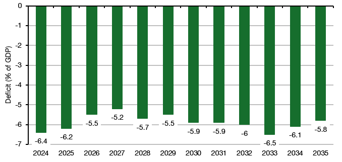 Дефицит правительства США огромен. Даже до продления налоговых льгот 2017 года Бюджетное управление Конгресса оценивает, что дефицит бюджета составит в среднем 5,9% ВВП в течение следующего десятилетия. Для сравнения, дефицит бюджета Великобритании, как ожидается, составит 3,8% ВВП в 2025 г., снизившись до 3,3% в следующем году. Как же они финансируют такой постоянно высокий дефицит?