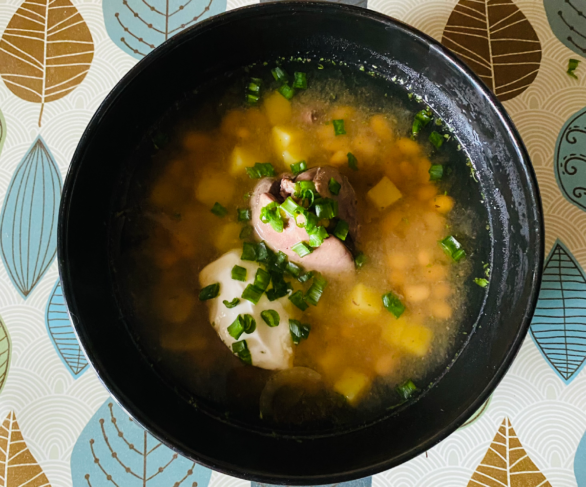 Фасолевый суп с куриной печенью. Очень простое и сытное блюдо готовим за 15 минут.