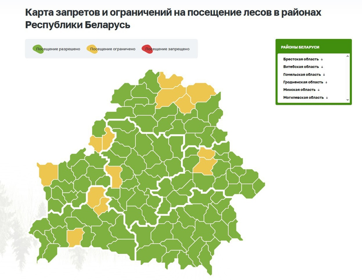 Ограничения на посещение лесов сохраняются в 13 районах Беларуси