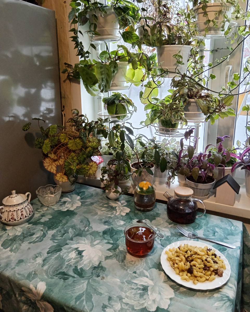 Пока чайник буйно бурлил, приготовила макароны с тушёнкой.