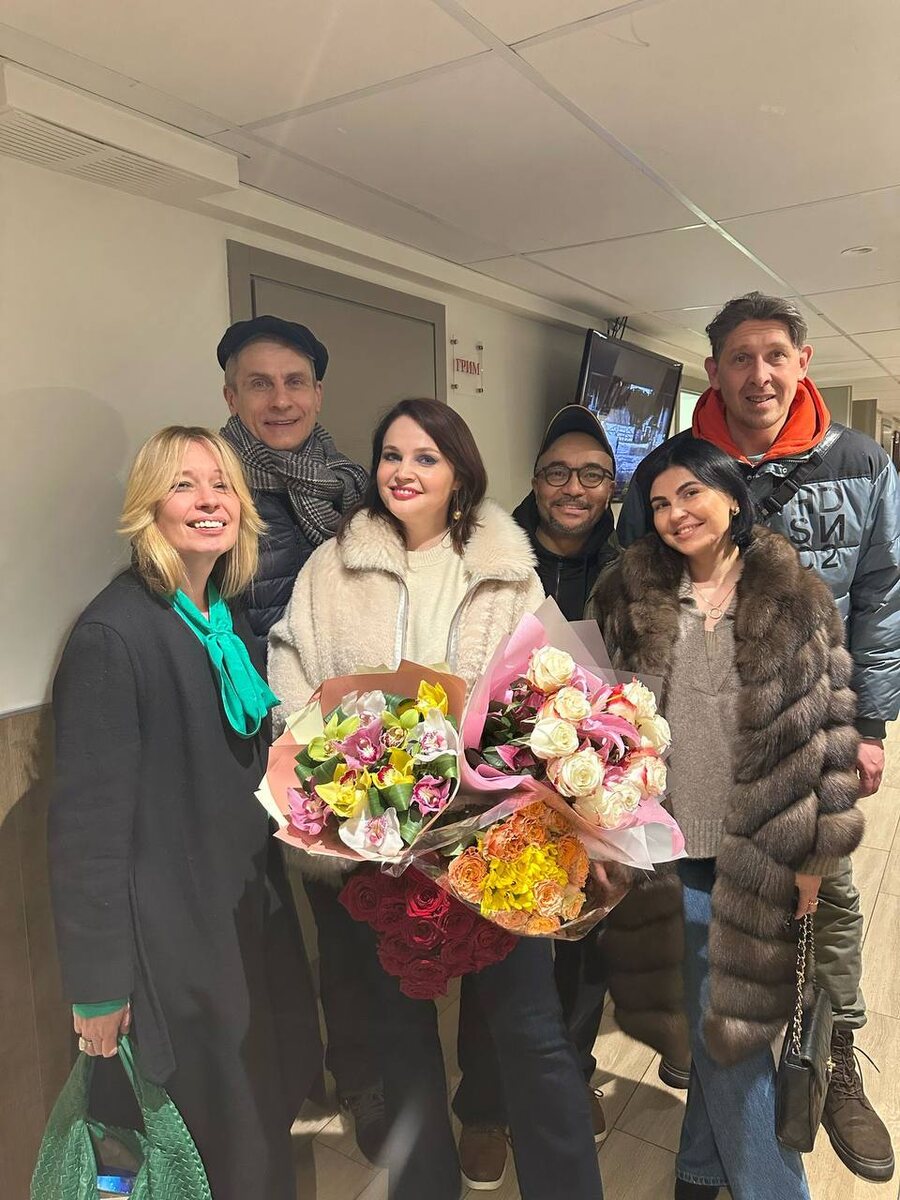 Редкое фото , после спектакля, с моими прекрасными подругами и любимыми партнерами по сцене! Илюша Шакунов, Гриша Сиятвинда и Дима
