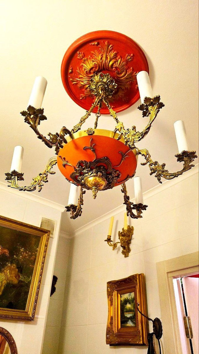 Люстра в ванной и декоративная розетка .