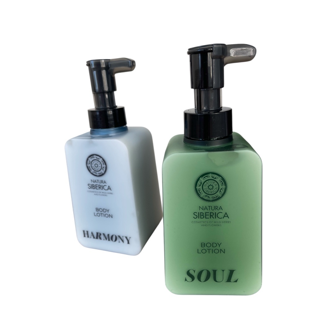 Когда я увидела эти симпатичные по дизайну баночки в фирменном магазине, конечно я не смогла пройти мимо, послушала ароматы и сразу взяла 2 флакона на пробу. Потом я несколько раз видела эти банки в ресторанах, всего 5 ароматов (у меня Harmony и Soul, есть еще Wisdom, Meditation и Relax) и эта серия, как я поняла, выпускалась для гостиниц, ресторанов и т.д. Товары в линейке Natura Siberica : гель для душа, лосьон для тела, шампунь и бальзам для волос, крем для рук и жидкое мыло. Дополнительно есть рефилы и держатели. Упаковка и привлекла дизайном, сдержанный, лаконичный, пластик матовый, цветной, полупрозрачный, виден расход, у серии Soul зеленоватый, у Harmony-голубой. Есть дозатор, работает плавно, есть накладка на дозатор (защита от нажатия), я их часто выкидываю. Объем 450 мл. Есть нюансик с подачей средства к концу использования, когда средства еще порядочно-дозатор его перестает выдавать, приходится переворачивать флакон и подпирать его со всех сторон, т.к. носик дозатора не ус