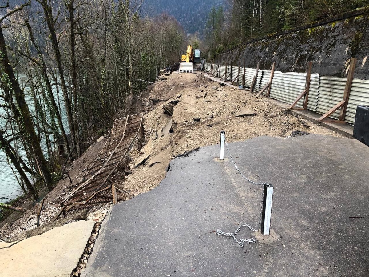 На 41-м километре автодороги, ведущей к озеру Рица, начались ремонтно- восстановительные работы. Причиной стал произошедший оползень. По поручению Президента Бадры Гунба были переброшены спецтехника и специалисты для проведения геодезических и геологических изысканий. В настоящее время идет раскопка котлована.
