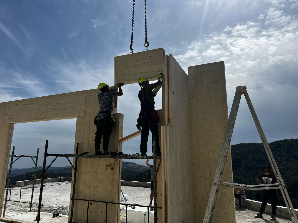Первый этап проекта включал в себя транспортировку CLT из Австрии на Кипр. Панели, изготовленные прибыли на Кипр морским путем и потребовали четкой организации процесса разгрузки. Использовалась специальная техника, которая может работать в условиях ограниченного пространства и горной местности, такие как автопомпы и крановые установки.