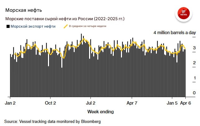 🇷🇺 Россия научилась обходить санкции, ведённые Байденом, — Bloomberg Три партии нефти из Арктики доставили в Индию. Сначала топливо на санкционных танкерах доставили в Мурманск, а потом его перегружали на океанские суда. Поставки российской нефти по морю сократились до 3,23 млн баррелей в день. Это самый низкий показатель за месяц. @if_news