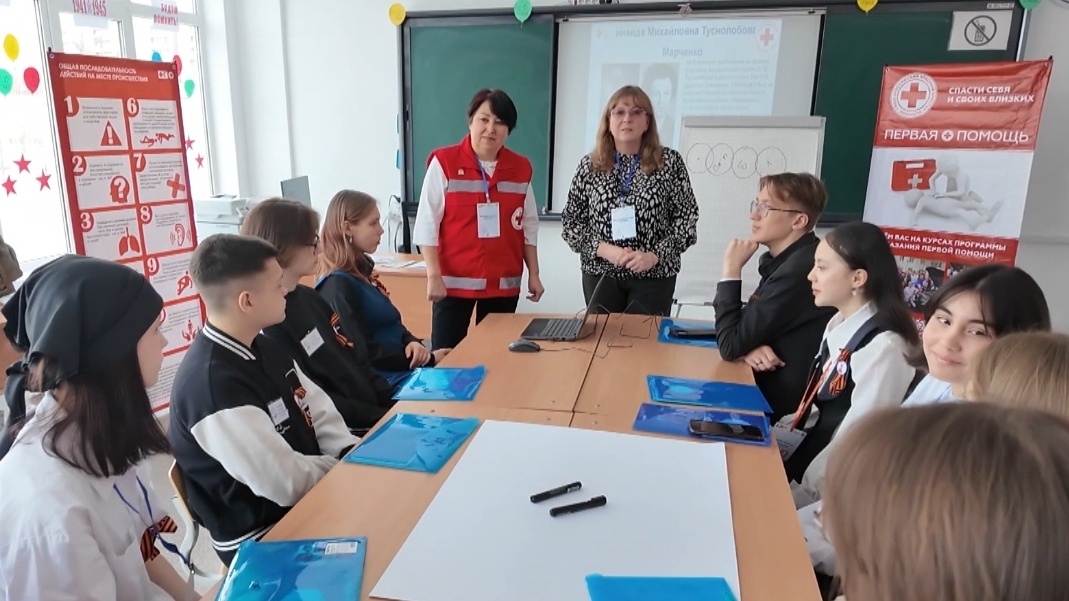 Восемьдесят участников, семь тематических площадок. В Нягани состоялся слет школьных научных обществ. Ежегодное городское мероприятие на этот раз юбилейное, десятое. Его приурочили к 80-летию со дня Великой Победы. На одной площадке обсуждают, как провести спортивное мероприятие в преддверии 9 Мая, по соседству — думают над медиапроектом. А здесь собрались люди, неравнодушные к медицине. Они изучают, как волонтеры-медики помогали в годы войны. Светлана Авдеева, руководитель отделения общественного движения «Волонтеры-медики» в г. Нягани: «Состав аптечки прошлых лет был минимален. Это в основном средства для первой помощи — остановки кровотечения, снятия болевого шока: пакет перевязочный стерильный, ножницы, салфетки». Спикеры площадки — практикующие медики. Инна Акатьева — медсестра, а еще и волонтер, уже несколько раз побывала с гуманитарной миссией в Донбассе. Инна Акатьева, руководитель отделения Красного Креста в г. Нягани: «Параллель, конечно, есть. Особо ничего не поменялось, кро