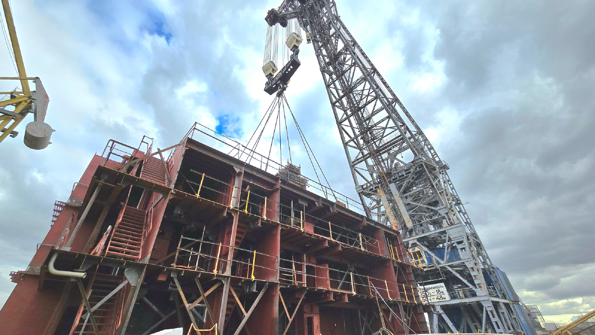 Специалисты Балтийского завода ОСК погрузили на строящийся атомный ледокол «Чукотка» укрупненный блок секций надстройки судна. Трехъярусный блок весом более 200 тонн состоит из девяти секций и установлен на борт ледокола при помощи плавучего крана «Демаг». Длина конструкции – более 25 метров, ширина – почти 12.