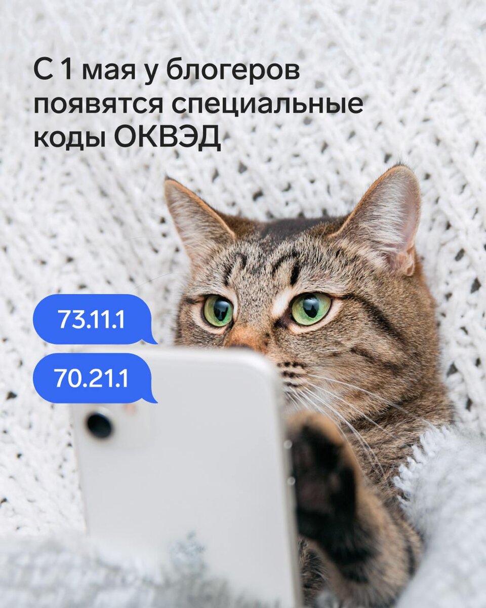Блогерство — это бизнес? Теперь точно да! 💡 С 1 мая у блогеров появятся отдельные коды ОКВЭД. Добавьте их в ЕГРИП или ЕГРЮЛ, если ведёте соцсети и зарабатываете на рекламе. Для этого подайте заявление в налоговую. Сведения проверят, и данные в реестре обновятся автоматически. Советуем не откладывать этот момент, чтобы избежать проверок, штрафов и сложностей с контрагентами. 🐸 Как всё сделать правильно и быстро, рассказали в новой статье.