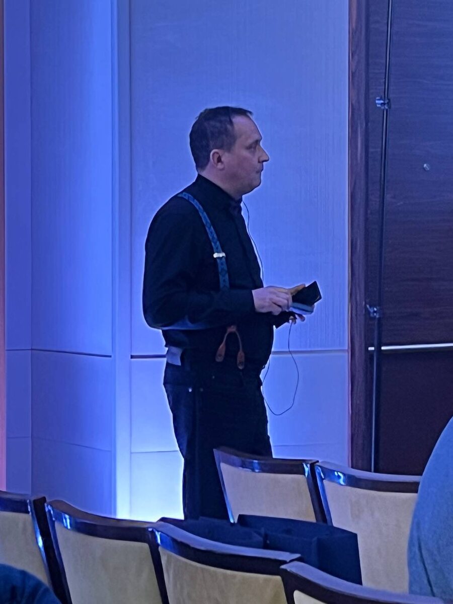 Сергей Михайлов уже в кулуарах и готовит свой вопрос Дэвиду.