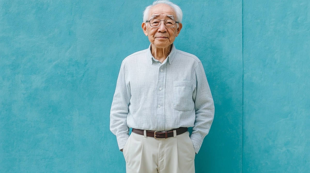 Создано на основе запроса: A senior standing tall and upright with good posture, looking confident and healthy against a simple background