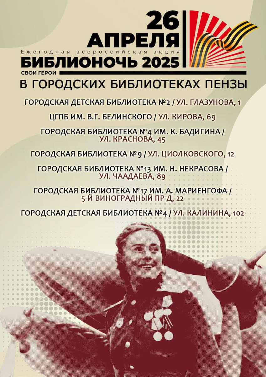 πΠΠΎΡΠΎΠ΄ΡΠΊΠΈΠ΅ Π±ΠΈΠ±Π»ΠΈΠΎΡΠ΅ΠΊΠΈ ΠΠ΅Π½Π·Ρ ΠΏΡΠΈΡΠΎΠ΅Π΄ΠΈΠ½ΡΡΡΡ ΠΊ ΠΡΠ΅ΡΠΎΡΡΠΈΠΉΡΠΊΠΎΠΉ Π°ΠΊΡΠΈΠΈ Β«ΠΠΈΠ±Π»ΠΈΠΎΠ½ΠΎΡΡ-2025Β» ΠΡΠ΅ΡΠΎΡΡΠΈΠΉΡΠΊΠ°Ρ Π°ΠΊΡΠΈΡ Β«ΠΠΈΠ±Π»ΠΈΠΎΠ½ΠΎΡΡΒ» Π² 2025 Π³ΠΎΠ΄Ρ ΠΏΡΠΎΠΉΠ΄Π΅Ρ 26 Π°ΠΏΡΠ΅Π»Ρ ΠΈ Π±ΡΠ΄Π΅Ρ ΠΏΡΠΈΡΡΠΎΡΠ΅Π½Π° ΠΊ ΠΠΎΠ΄Ρ Π·Π°ΡΠΈΡΠ½ΠΈΠΊΠ° ΠΡΠ΅ΡΠ΅ΡΡΠ²Π° ΠΈ 80-Π»Π΅ΡΠΈΡ ΠΠ΅Π»ΠΈΠΊΠΎΠΉ ΠΠΎΠ±Π΅Π΄Ρ. ΠΠΎ ΡΡΠ°Π΄ΠΈΡΠΈΠΈ ΠΏΠ΅Π½Π·Π΅Π½ΡΠΊΠΈΠ΅ Π³ΠΎΡΠΎΠ΄ΡΠΊΠΈΠ΅ Π±ΠΈΠ±Π»ΠΈΠΎΡΠ΅ΠΊΠΈ ΠΏΡΠΈΡΠΎΠ΅Π΄ΠΈΠ½ΡΡΡΡ ΠΊ Π°ΠΊΡΠΈΠΈ ΠΈ ΠΎΡΠ³Π°Π½ΠΈΠ·ΡΡΡ ΡΠΈΠΊΠ» Π»ΠΈΡΠ΅ΡΠ°ΡΡΡΠ½ΡΡ