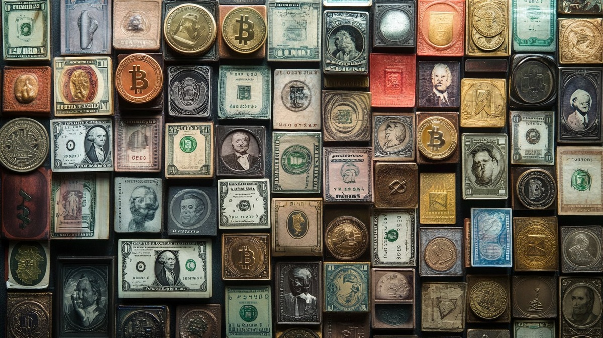 Создано на основе запроса: all kinds of different versions of money, ray stone, usd, bitcoin