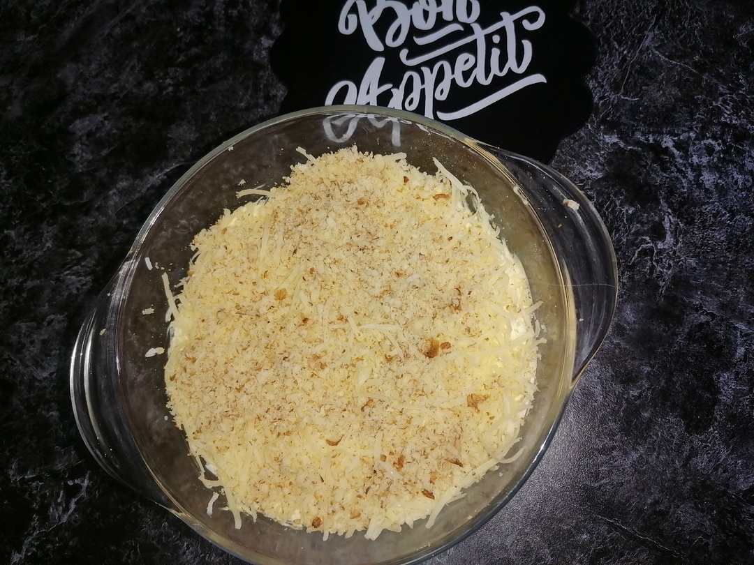 1. Сварите картошку и яйца. Остудите и очистите. 2. Нарежьте кусочками грибы. Мелко порубите лук. Слегка обжарьте шампиньоны в сковороде с маслом, добавьте лук и готовьте, пока не выпарится жидкость из грибов. В конце подсолите. Остудите. 3. Натрите картошку, яйца и сыр на тёрке. 4. Смешайте майонез с чесноком. 5. Соберите салат слоями в такой последовательности: половина картофеля, половина яиц, грибы, картошка, яйца и сыр. Все слои, кроме последнего, смазывайте майонезом. 6. Грецкий орех потрите на мелкой терке и посыпьте сверху на сыр Дорогие друзья! Мы рады сообщить вам о возможности поддержать наш канал на платформе Dzen! (dzen.ru/lavka_basilic?donate=true) Ваш вклад в любую сумму поможет нам продолжать создавать интересный и качественный контент, который приносит вам радость и знания. Чтобы сделать пожертвование, просто перейдите по этой ссылке и выберите удобную для вас сумму. Мы будем благодарны за любую поддержку. Спасибо, что остаётесь с нами! Ваша поддержка имеет огромное