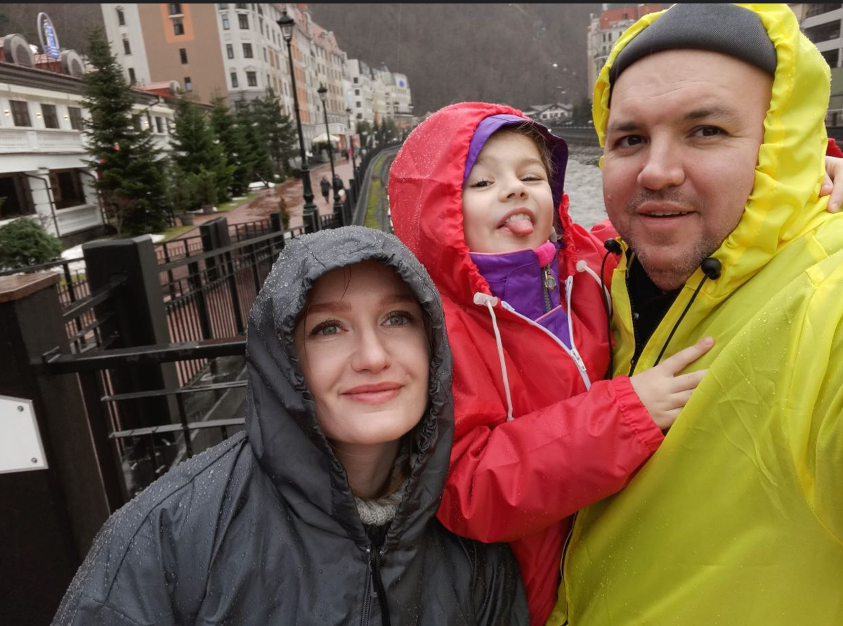 Дорога на Красную поляну заняла у нас около полутора часов. Все это время дождь не прекращался, но мы к этому оказались готовы. Что в принципе для нас удивительно. У нас были дождевики. Прям перед самым отъездом мы заказали себе нормальные дождевики и успели их получить. Они нас не подвели и местами даже сильно пригодились.