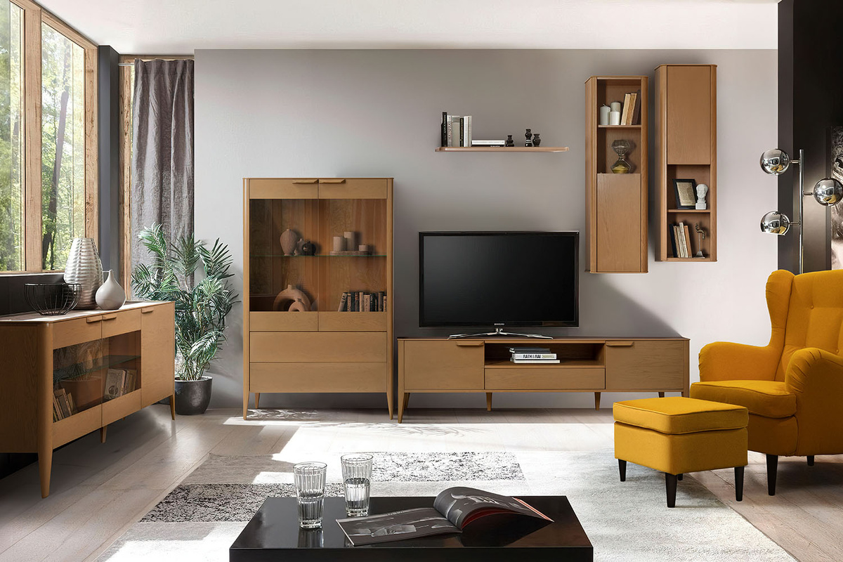 🔸 Презентабельность: текстура дуба остаётся ведущим акцентом — она хорошо читается, подчёркивает статус мебели и превращает каждый элемент в самостоятельный декоративный объект.