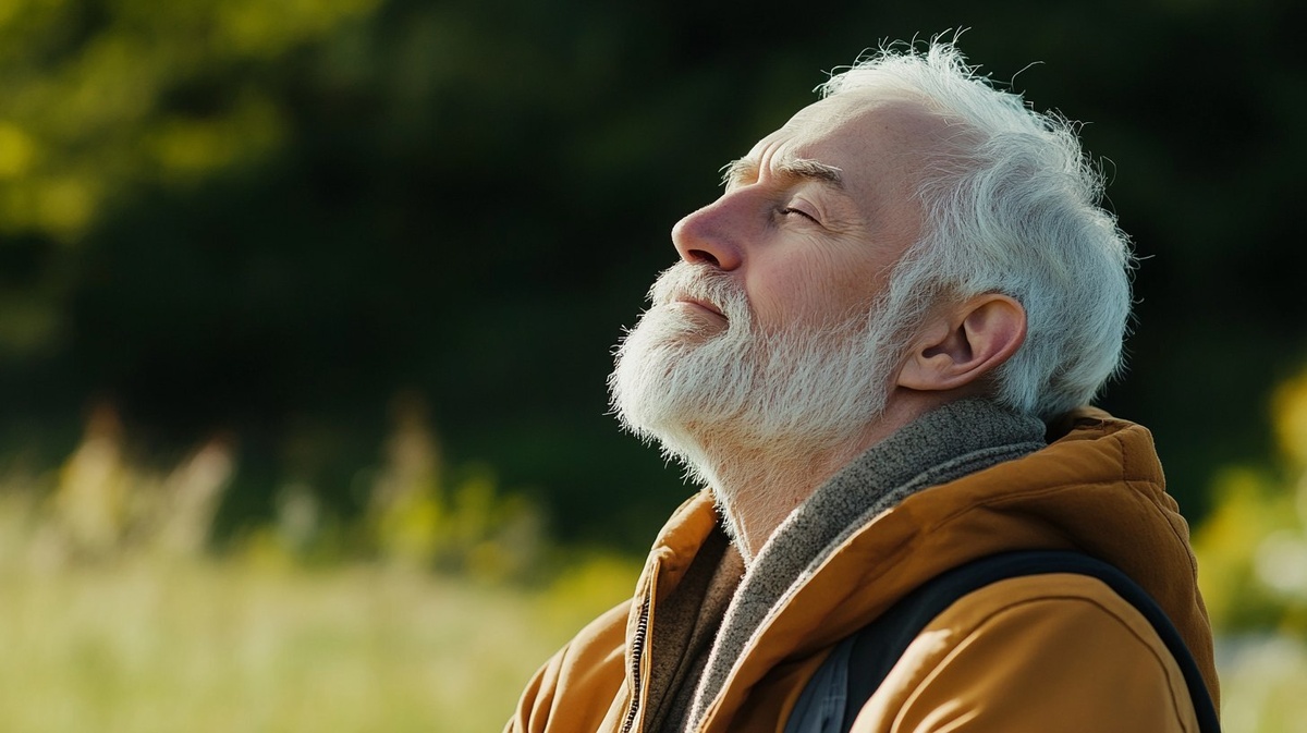 Создано на основе запроса: A senior peacefully meditating outdoors or practicing deep breathing exercises, looking calm and centered