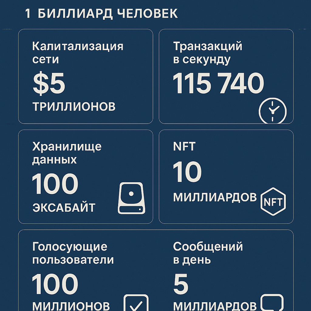 - Solana: ~65,000 TPS (текущий максимум)
