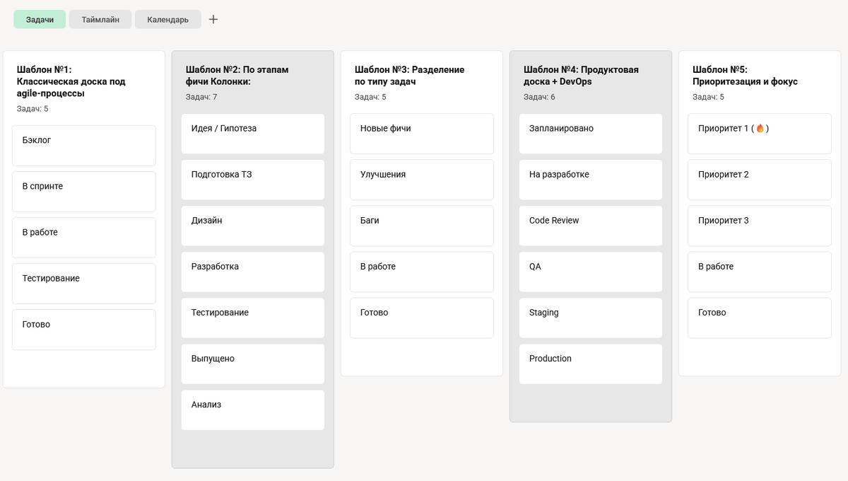 Шаблоны канбан-досок в продуктовой разработке