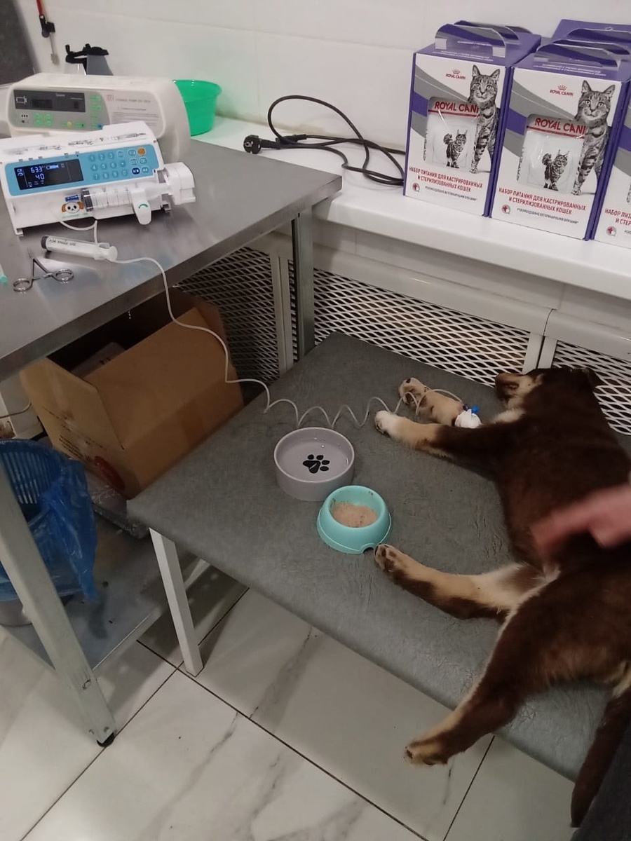 Когда приехали домой, Мишель посикала с кровью, ее мотало, стоять уже не могла. 😭 Стали звонить в клинику, оказывается они не взяли